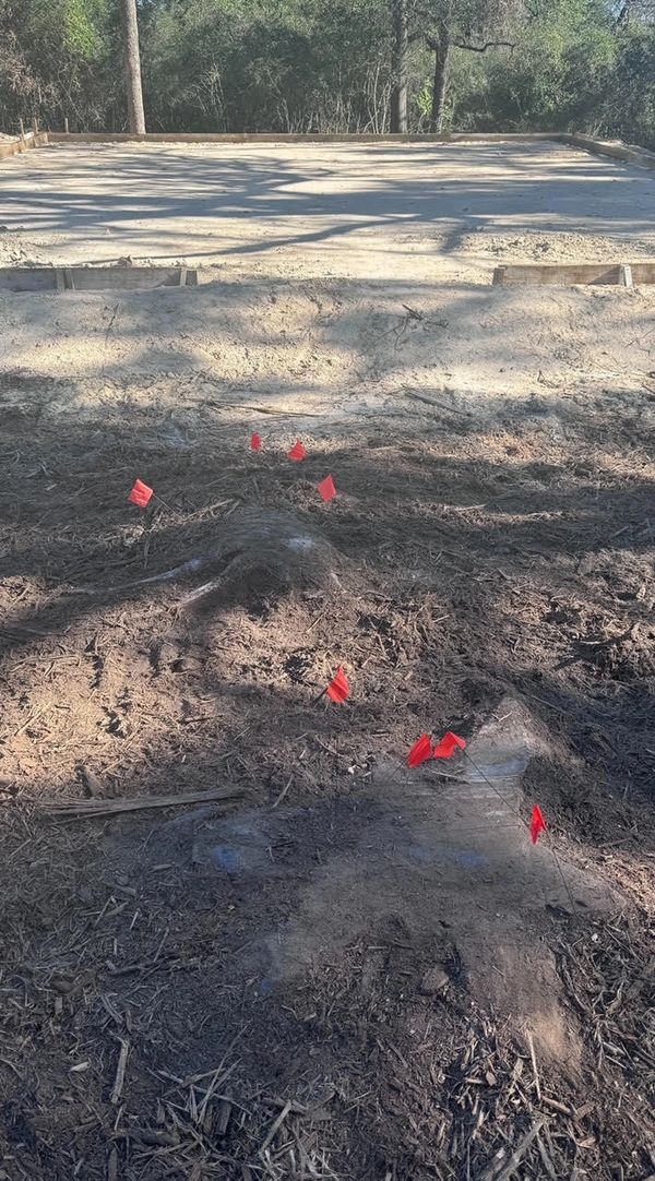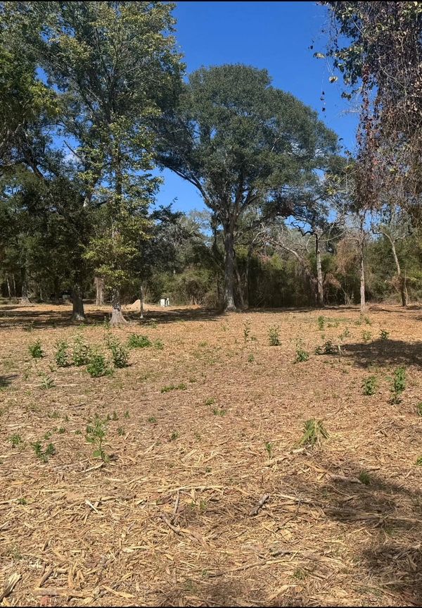 This is a photo of a recently mulched property. Mainly consisting of heavy yaupon and oak trees. The only regrowth is from the yaupon that was shaved down. These mulcher heads are only capable of getting a few inches towards the ground so they are not capable of getting the root system out. Also, they leave the bottom few inches of the stumps sticking out of the ground. Which is basically like having hundreds of spikes scattered across your land. However, the worst part is what's been hidden under the mulch!